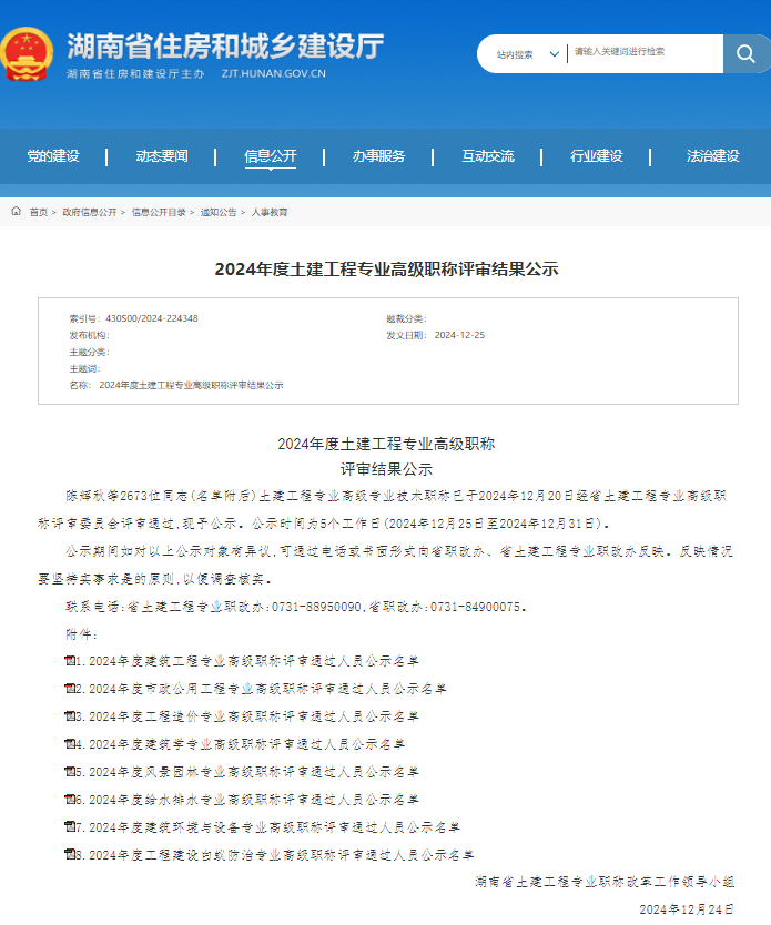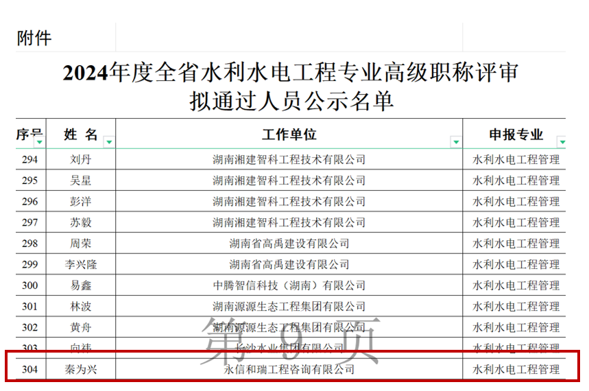 12月24日,湖南省住房和城鄉建設廳發布2024年度土建工程專業高級職稱評審結果,我司陳艷平、劉冀旻、秦為興、王莎莎、劉暢宜及羅昌旺等6位同事通過職稱評審,成功晉升副高。