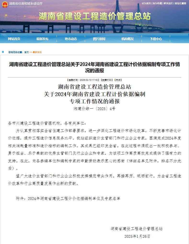在湖南省2024年度相關(guān)消耗量標(biāo)準(zhǔn)和造價指標(biāo)編制工作中,我司陳鳳、賀偉洲、劉支農(nóng)、陳艷平四位同事表現(xiàn)優(yōu)異,憑借深厚的專業(yè)實(shí)力為優(yōu)化省內(nèi)建設(shè)工程造價計(jì)價管理依據(jù)、營造良好的工程造價行業(yè)發(fā)展環(huán)境做出重要貢獻(xiàn),獲得造價總站高度贊譽(yù)。