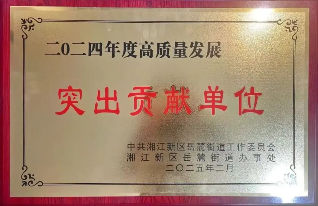我司榮獲岳麓街道2024年度高質(zhì)量發(fā)展突出貢獻(xiàn)單位獎(jiǎng)